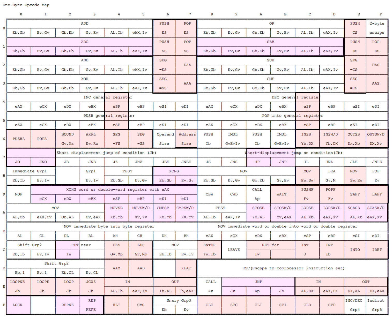 个人观点: 总计43.36%的1字节操作码空间的使用并不合理