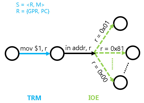 折中: 通过引入状态机的不确定性, 仅对I/O指令的行为进行建模: