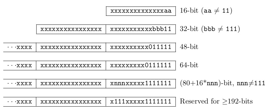 除了压缩指令, 上述指令均采用固定4字节的指令长度